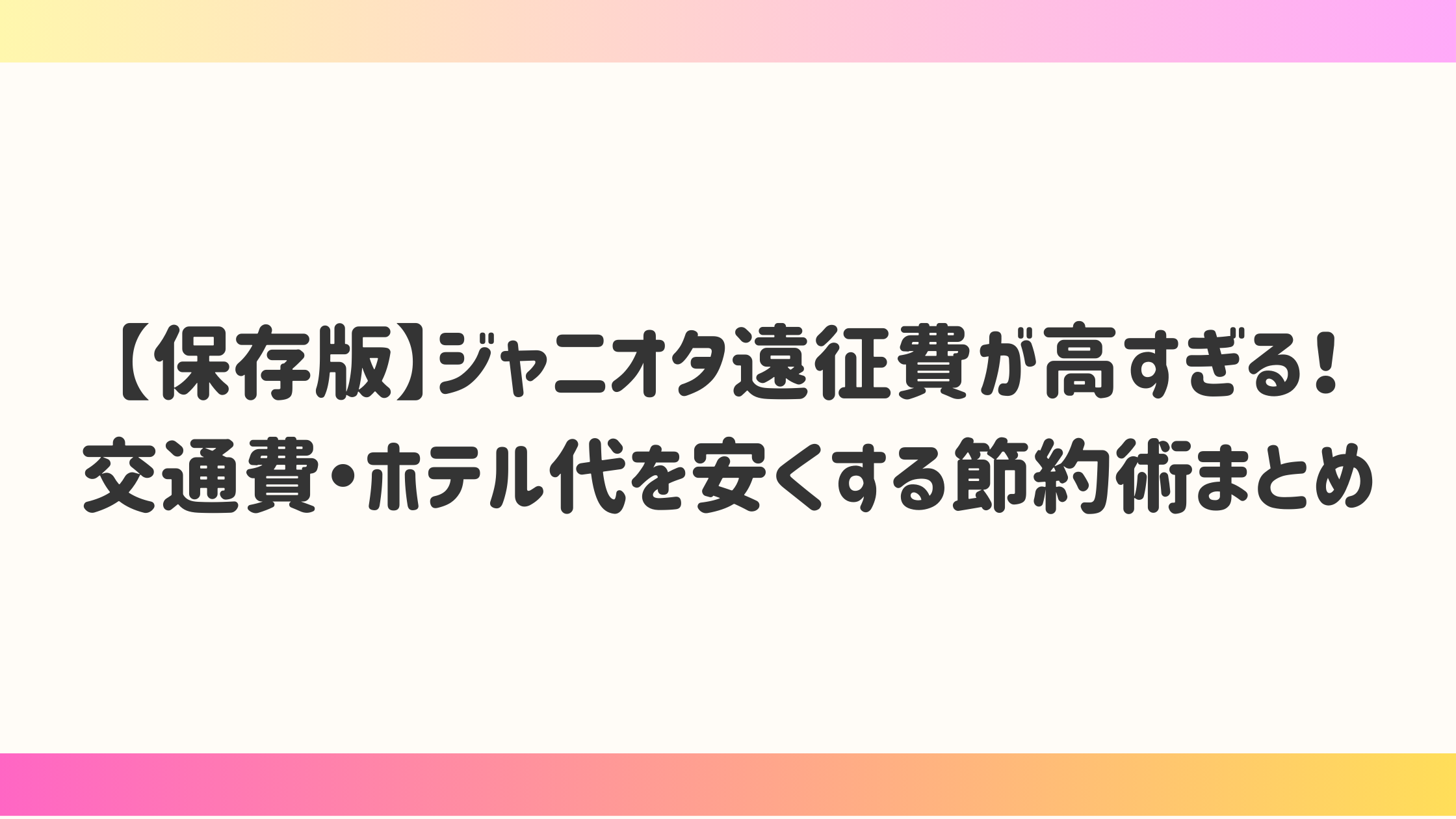 この記事では、ジャニオタが少しでも無理せず現場に通えるように、