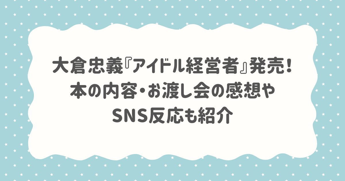 『アイドル経営者』の基本情報・内容・SNSの反応・お渡し会レポまとめを分かりやすく紹介します。